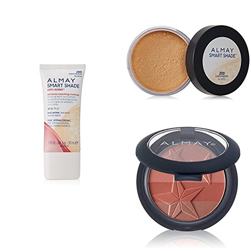 -. Title : Almay Smart Shade Face Collection - Anti-Aging Skintone Matching Liquid Foundation, Loose Finishing Powder & Powder Blush, Light Medium & Coral