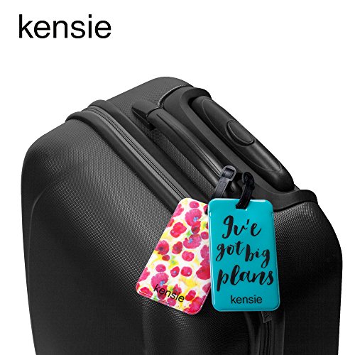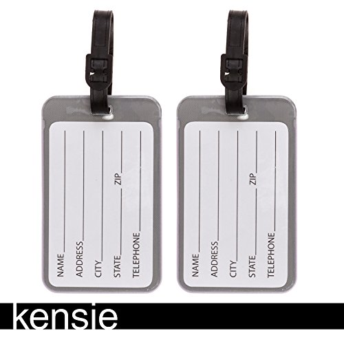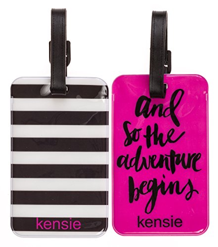 Product Description Keep your luggage from getting lost and identify them quickly using the Kensie Buckle Closure Plastic PVC Luggage Tags, 2 Pack. These luggage tags are not only funky and stylish in looks but also are very handy in identifying the baggage. One of them features a text on one side, the other one features a bright and vibrant design on one side, while both of them feature the identification cards on the other. These tags add a light-hearted touch to your already exciting traveling experience. They can be attached easily to suitcases, backpacks, golf bags, laptop bags etc. Now leave the worry of losing your baggage and travel in a relaxing manner. 0
