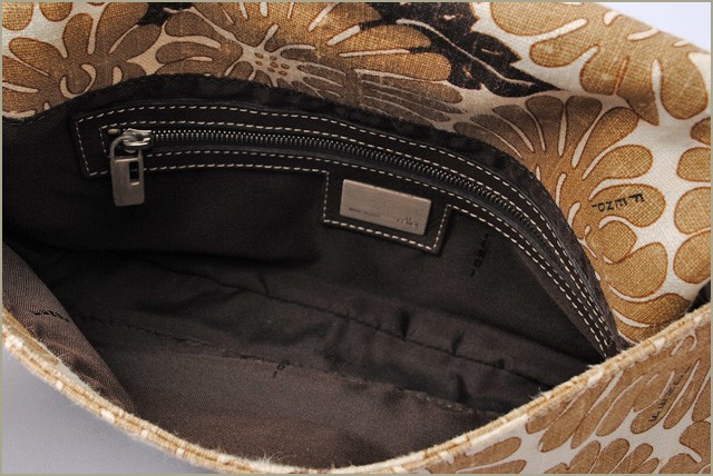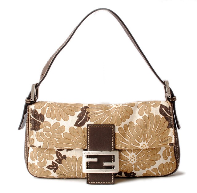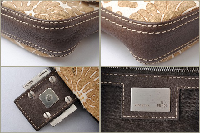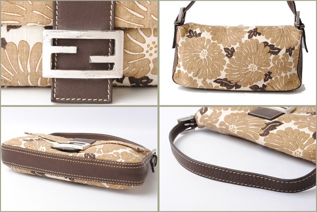 フェンディ ハンドバッグ/アクセサリーポーチFENDI ミニマンマバゲット ブラウン/ベージュ フラワー柄FENDI/フェンディより、ストラップの取り外しが可能なクラッチバッグ兼用ハンドバッグです。センターにシルバーのFENDIのロゴプレートがあり、存在感があります。カジュアルな服装にも合わせやすい、コットン素材で、普段使いにも最適です。【 用途 】クラッチバッグ、ハンドバッグ、アクセサリーポーチ