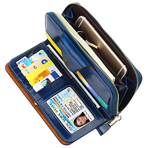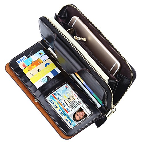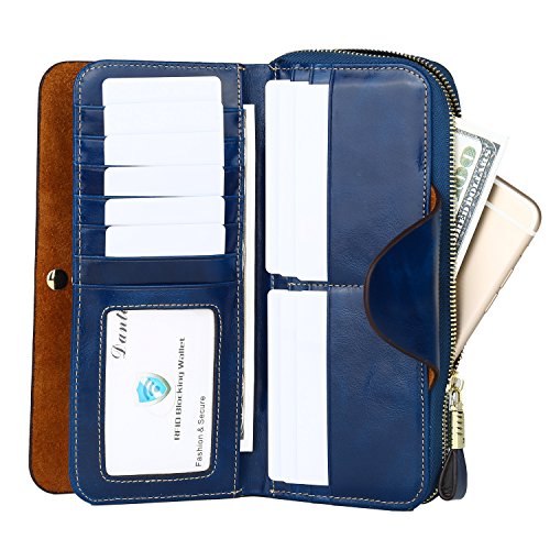-. Title : Dante RFID Blocking Large Capacity Wax Real Leather Clutch Wallet Card Holder Purse for Women