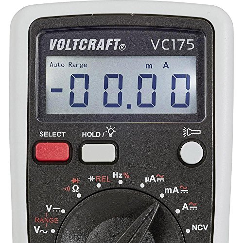 Voltcraft Multimeter VC175 Digital Handheld for AC DC Current, Capacitance, Frequency amd Duty Cycle Measurement; 4000 Counts with Flashlight and Backlight; CAT III 600 V Including 9V Battery