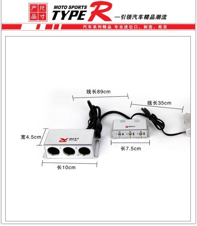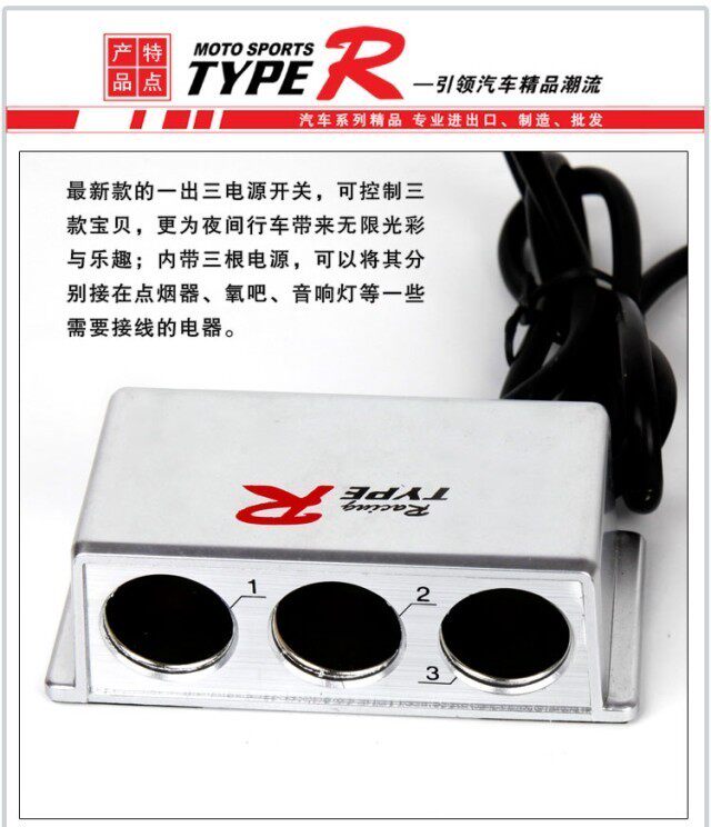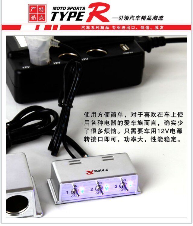 1, 3 rows of holes integral design, small volume, no messy line, does not occupy space, car beauty.