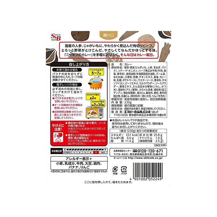원본상품명: S&B カレ?曜日 辛口 230g×5個