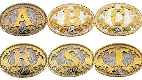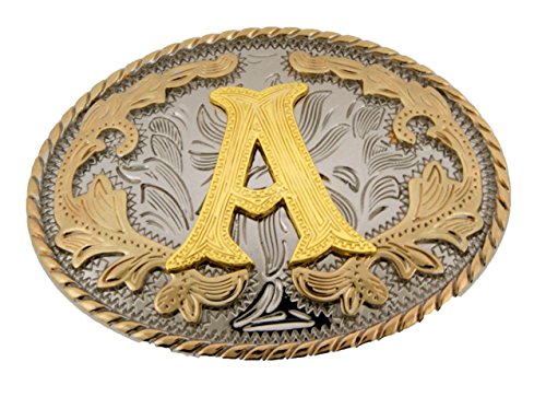 Initial Belt Buckle Cowboy Unisex Western Rodeo Cowgirl (A, Gold Silver Two Tone Oval Regular)
