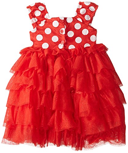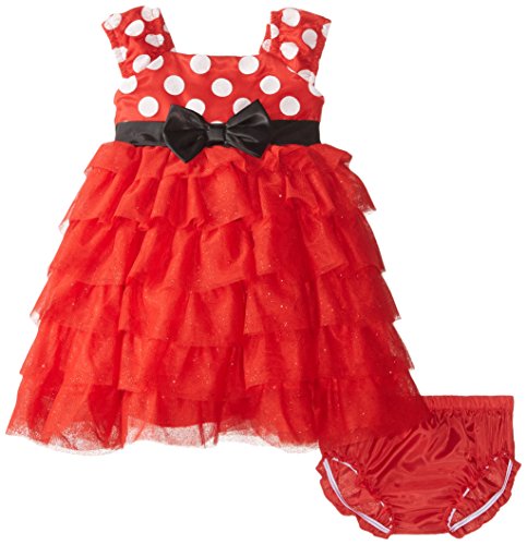 Product DescriptionMinnie dress. Polka dotted bodice with tacked on bow and glitter ruffled mesh skirt. Panty0