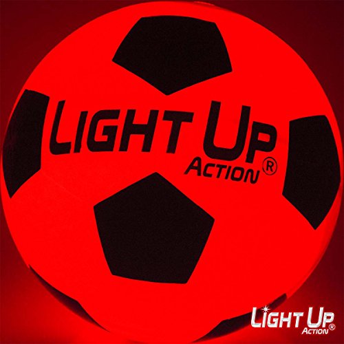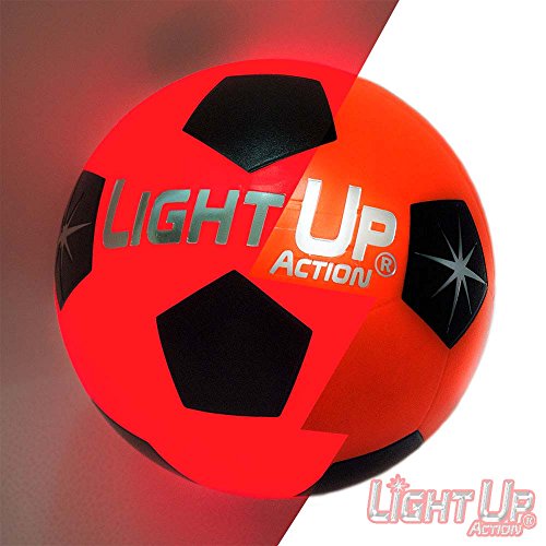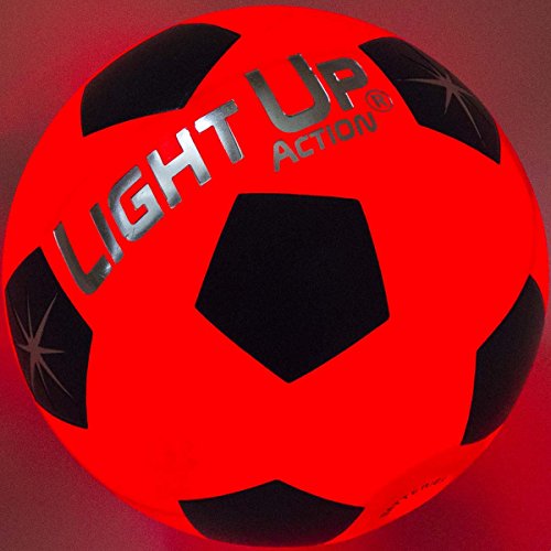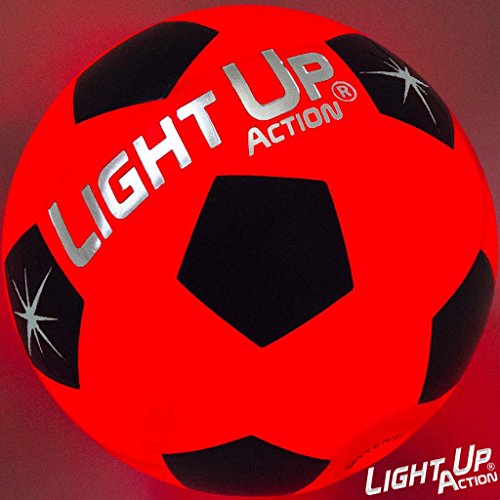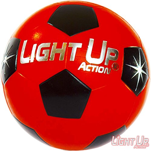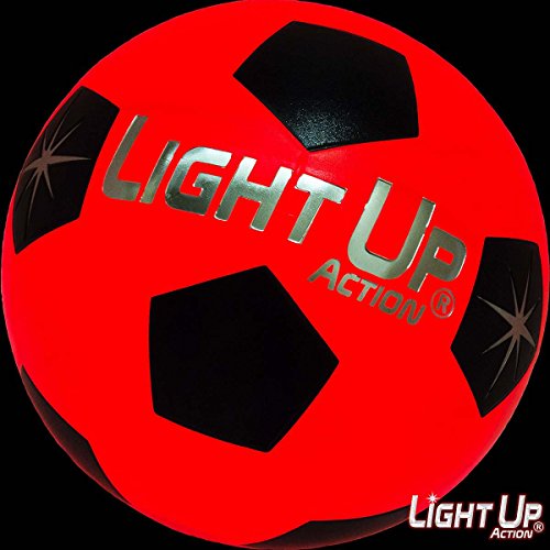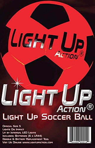 -. Feature : *NEW* and Bright as a Comet - Fiery Red Light Consumes this Soccer Ball Like it's RADIOACTIVE / Silver Edition has 3-Minute Auto-off when resting, Advanced Twin-Torch LED's that Light On Impact, Silver Embossed Logo / Size 5, Nylon Wound, Rubber Ball, Traditional Soccer Ball Pattern, Water-Resistant & Durable Rubber, for Recreation, Not for Tournament Play / NO-HASSLE 60-DAY Repair/Replace Guarantee, Batteries Included, Batteries are Pre-Installed & Replaceable / Cool Gift for Kids, Teens, Adults Space Aliens of all ages