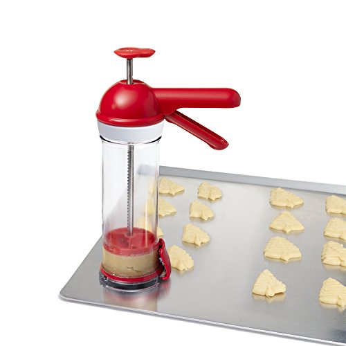 Chef'n Cookie Machine Cookie Press Spritz Cookie Gun for Holiday and Sugar Cookie Shapes, Cherry