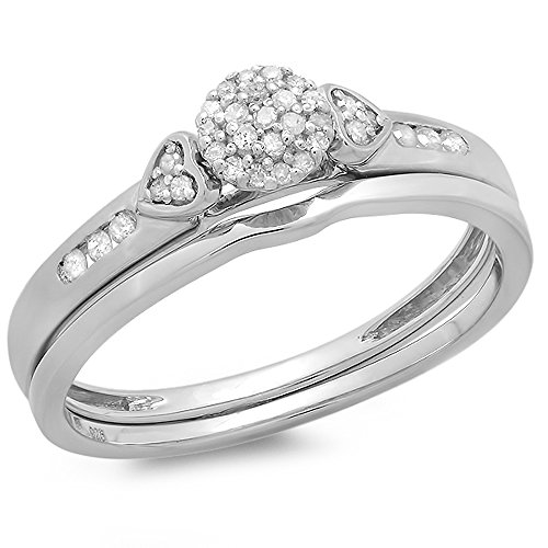 -. Title : 0.15 Carat (ctw) Sterling Silver Round Diamond Ladies Bridal Engagement Ring Matching Band Set