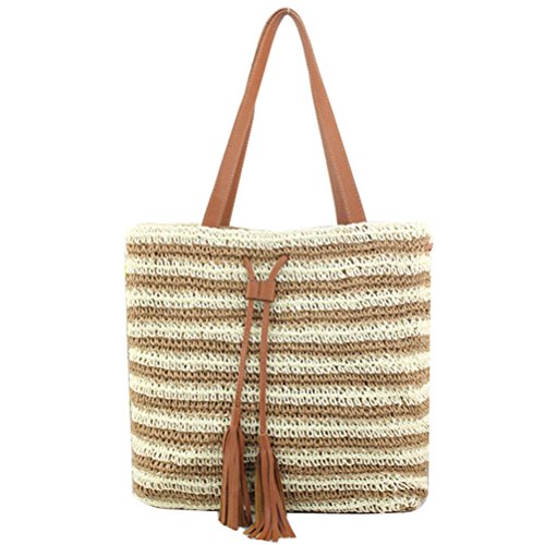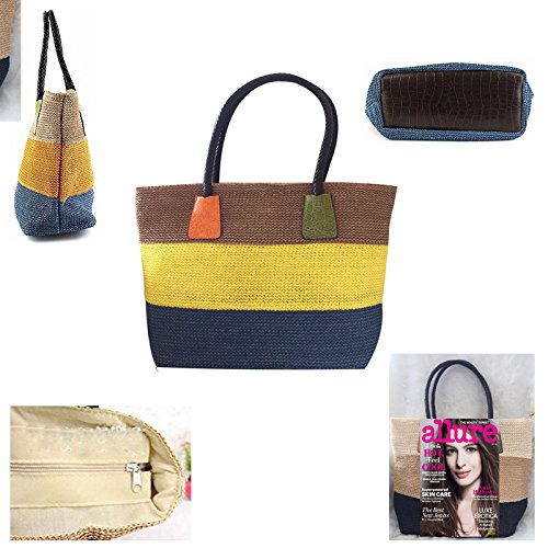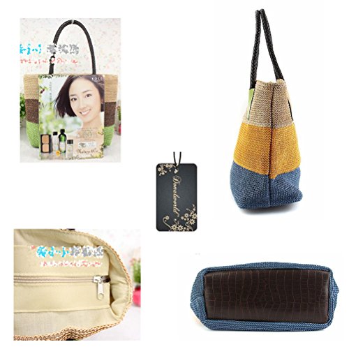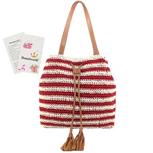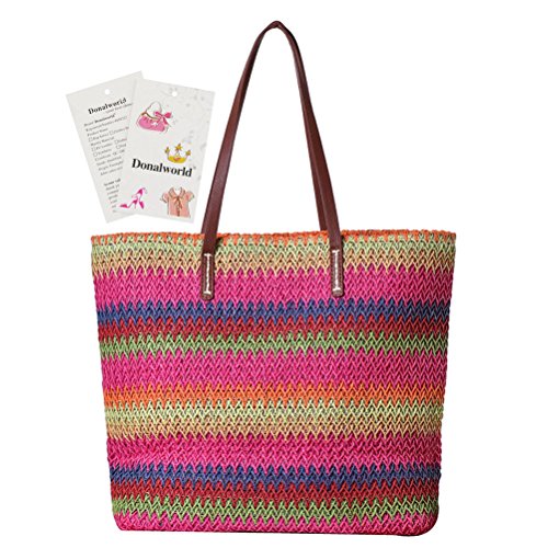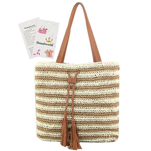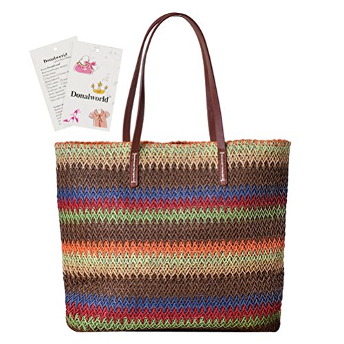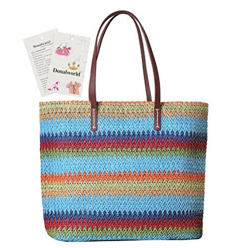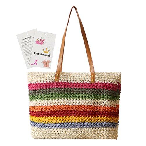 Donalworld Donalworld is the sole supplier of the brand Donalworld, Donalworld did not authorize any third party to sell products Note For Straw Bag 1.This is Pure Handmade Straw articles, No Place OVERWEIGHT stuff, Appro.less than 1.8 kg 2.this is handmade woven bag,normally,it have thread and rogh handfeeling,No quality problem Features 1.Main Material: straw and thread and import paper rope 2.Appro. Size: 29cm*12cm*30cm Length*widht*height appro. 10.2*14*5.5inches 3.Inner Structure:one small phone pouch and stainless zipper closure 4.External Design:color full stripes contrast-stitching decaration; there is totally included 2 handle strap 5.Capacity:you can place your phone,mirror and other small stuff when shopping, or cosmetic and swim glasses or bikini or umbrella on beach 6.Applicable Occasion: when dating,travel,vacation or shopping, it is the best gift for you or your friends or family Warmly Notice 1.allow 1-2 cm size error, due to manual measure 2.there is slightly color difference due to different monitors displays 3.import duties, taxes and charges are not included in the item price 0