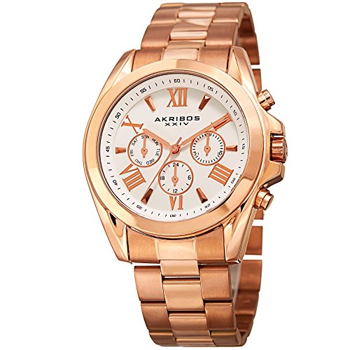 -. Title : Akribos XXIV Women's Multi-Function Rose Gold Tone Case on Rose Gold Tone Stainless Steel Bracelet White Dial with Rose Gold Tone Hands Watch AK951RG