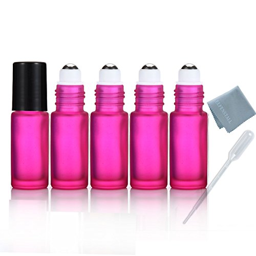 -. Title : Elfenstall- 5PCS Thick 5ml(1/6oz) Roll on Glass Bottle Frosted Pink for Essential Oil Empty Aromatherapy Perfume Bottle - Refillable with Stainless Steel Roller Ball 3ml free Pipette dropper