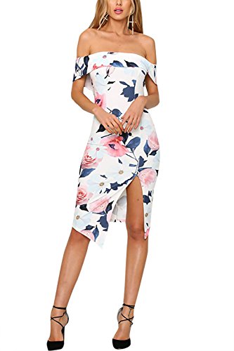 Title : YOINS Women Sexy Off Shoulder Layered Split Front Floral Bodycon Midi Dress Picture US 8