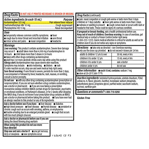 Pain reliever, fever reducer, cough suppressant, nasal decongestant