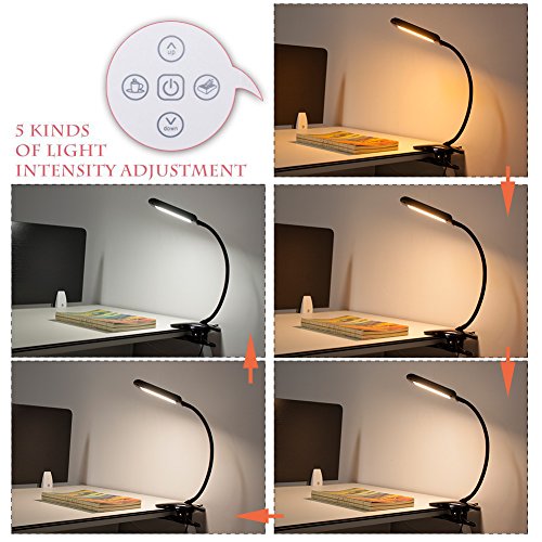 -. Title : KEDSUM Dimmable LED Desk Lamp,5 Lighting Modes,5-Level Dimmer ,Book Light with Clip-On Clamp ,Touch-Sensitive Control Panel, Flexible Gooseneck 7 Watt (White)