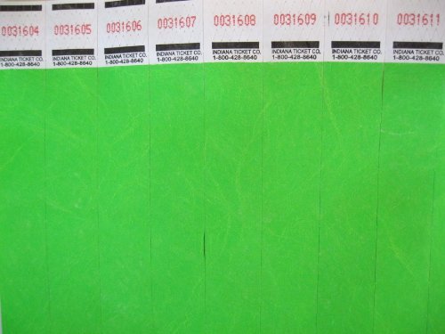 -. Feature : 400 Neon Green Tyvek Wristbands 3/4 Inch / consecutively numbered / waterproof, durable, great one time use / clubs, crowd control, amusement parks / raffles, identifications