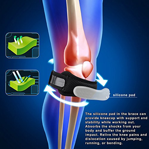 Ergonomic-shape Silicone Pad can provide stronger support and relive knee pains. Adsorbs shocks by providing the pressure on the nerves. The silicone compression pad is resilient and can contour your kneecap tightly. Reduce the pain associated with patellar tendonitis, jumper's knee, runner's knee, chondromalacia.