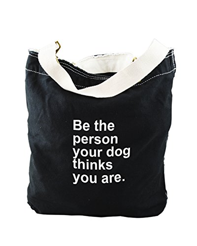 -. Brand : Decal Serpent -. Color : Black -. Department : womens -. EAN : 4943183146744 -. Feature : 100% Cotton Canvas / Natural Canvas Webbing Straps / Antique Brass Hardware / Inside Hanging Pocket / Made in USA -. ProductGroup : Shoes -. ProductTypeName : HANDBAG -. Title : Funny Be The Person Your Dog Thinks You Are Black Canvas Slouch Tote Bag