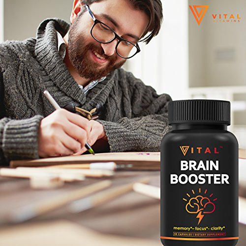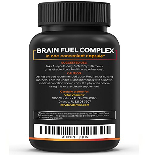 Brain Booster Nootropic by Vital Vitamins - Brain Fuel Complex in One Convenient Capsule If you've ever woken up after a full night's sleep feeling groggy and mentally foggy, you probably have tried to remedy it by reaching for endless cups of caffeine to help regain some brain function. With our Brain Booster by Vital Vitamins, there's no longer a need to experience that awful, mentally fuzzy feeling! Our memory enhancement supplements contain high-quality ingredients, such as Vitamin B-12, Bacopa Monnieri Extract, Phosphatidylserine, Ginkgo Biloba, Rhodiola Rosea Extract and DMAE (Dimethylaminoethanol Bitartrate), that help improve mental clarity, alertness, focus and mood. A single capsule delivers enough natural brain boosting nutrients to keep you energized throughout the day and night, functioning at optimal cognitive ability!