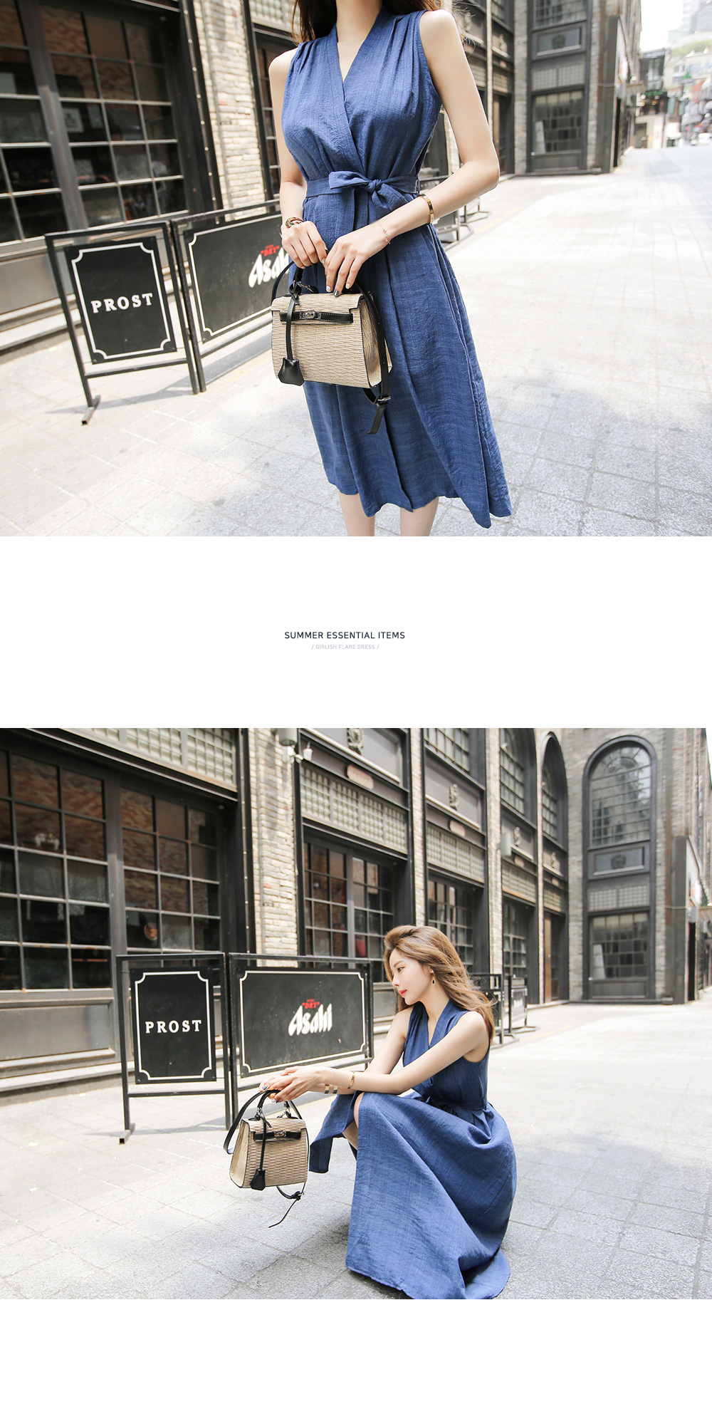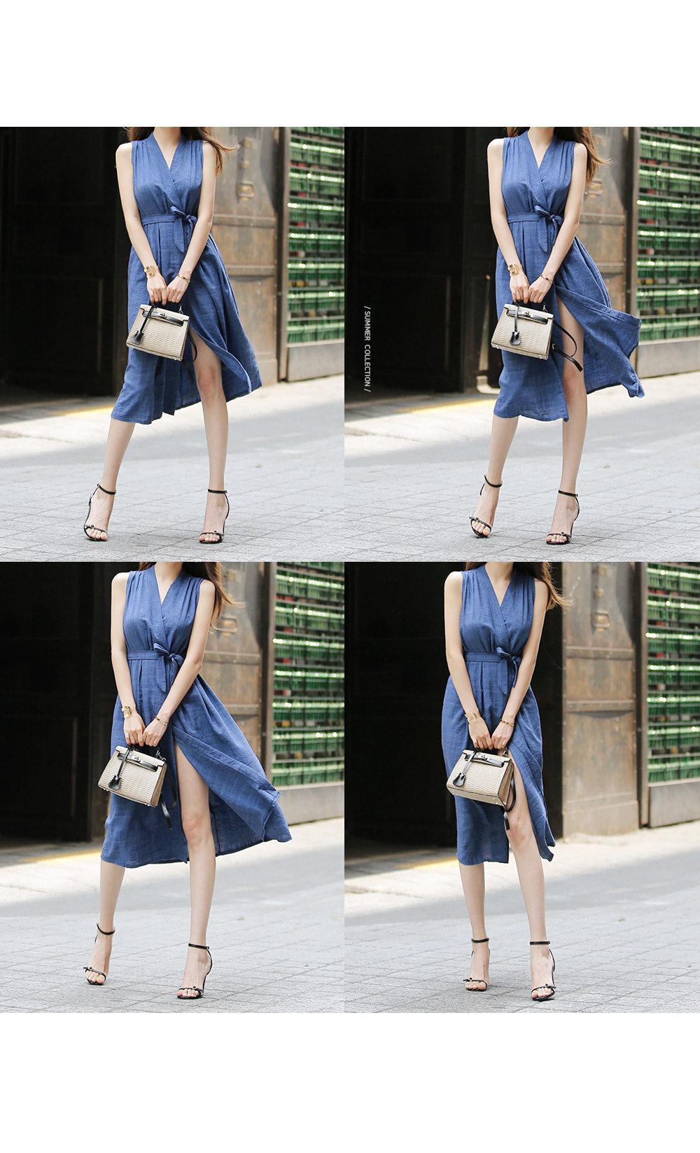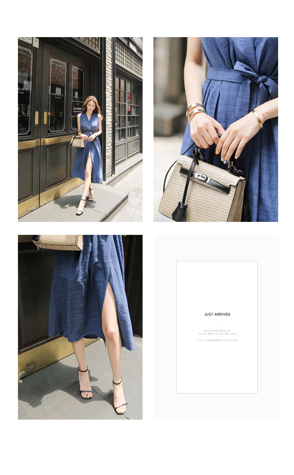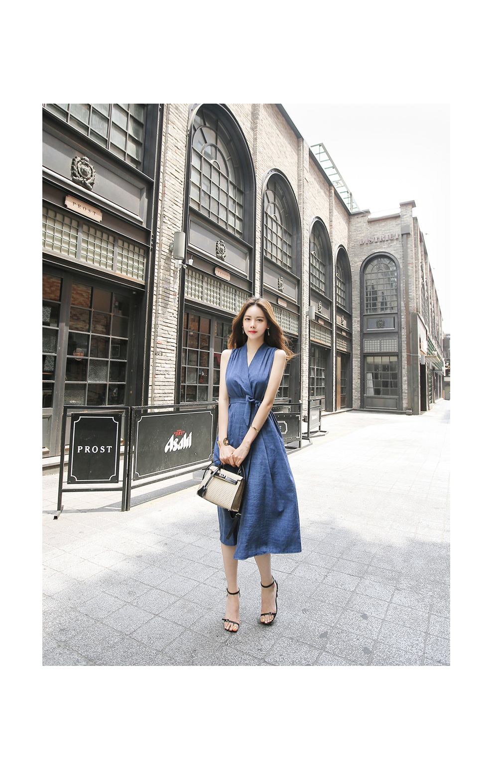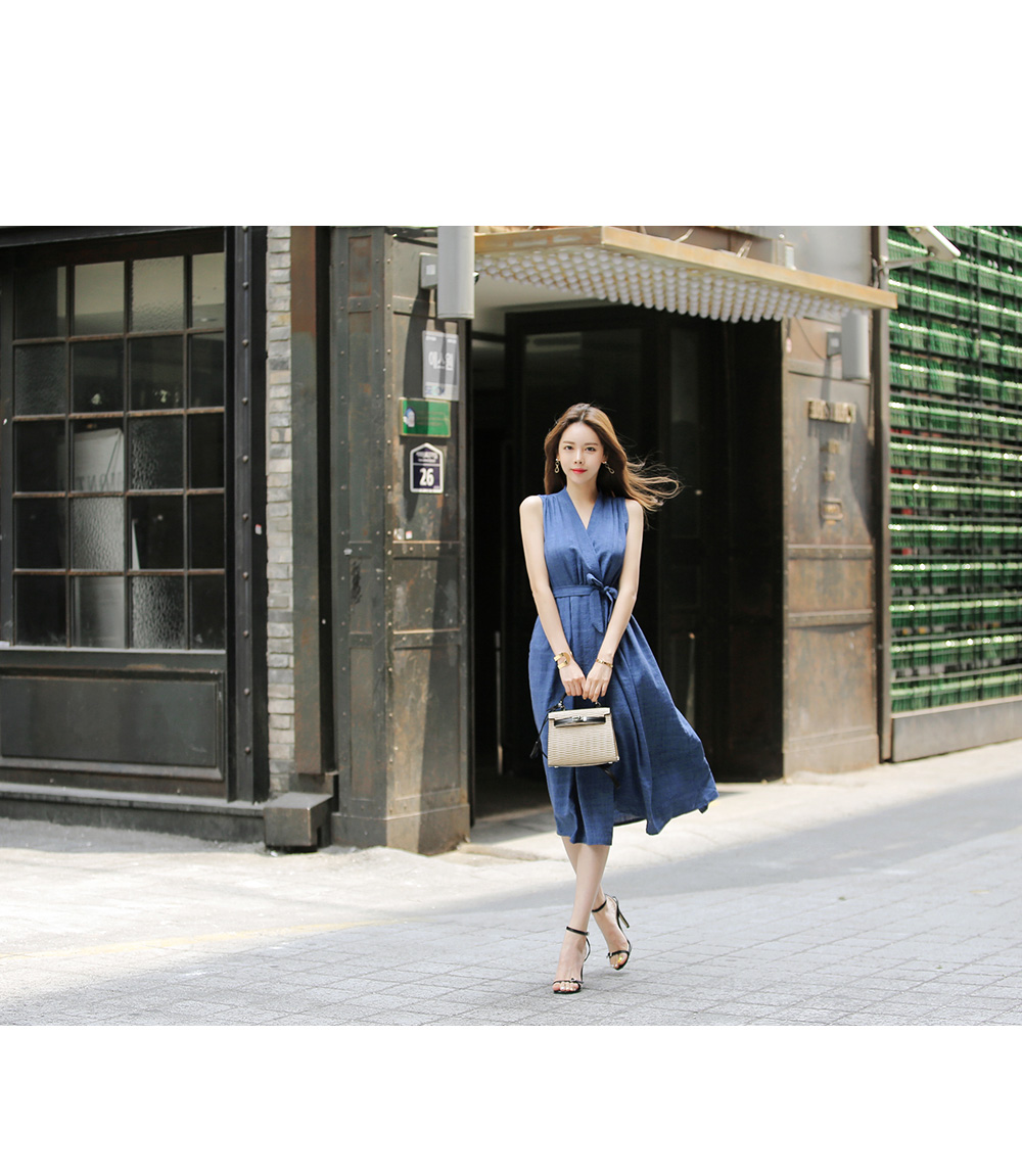 랩느낌으로연출되는 브이넥 네크라인으로 단정하게 마무리했어요 !