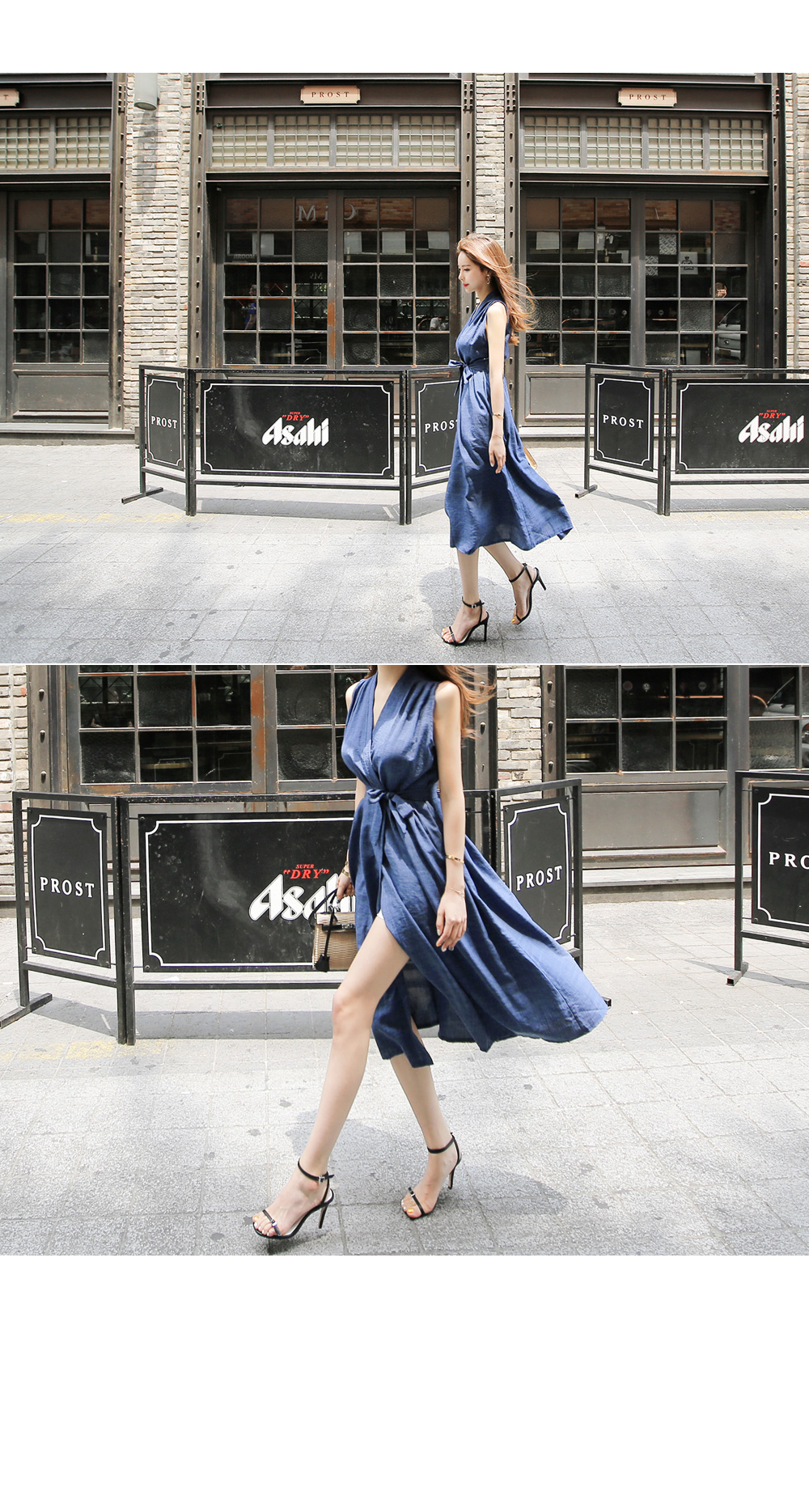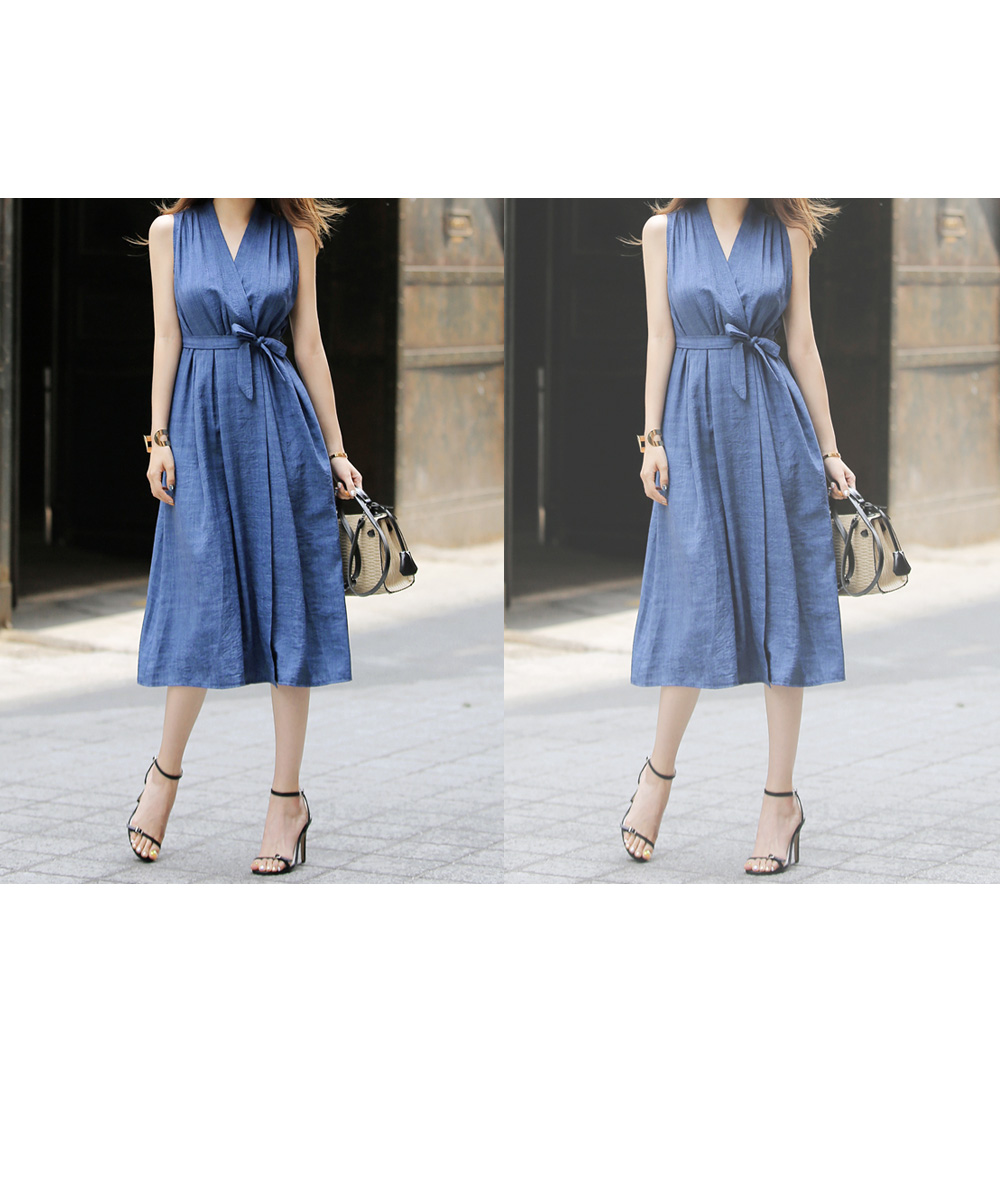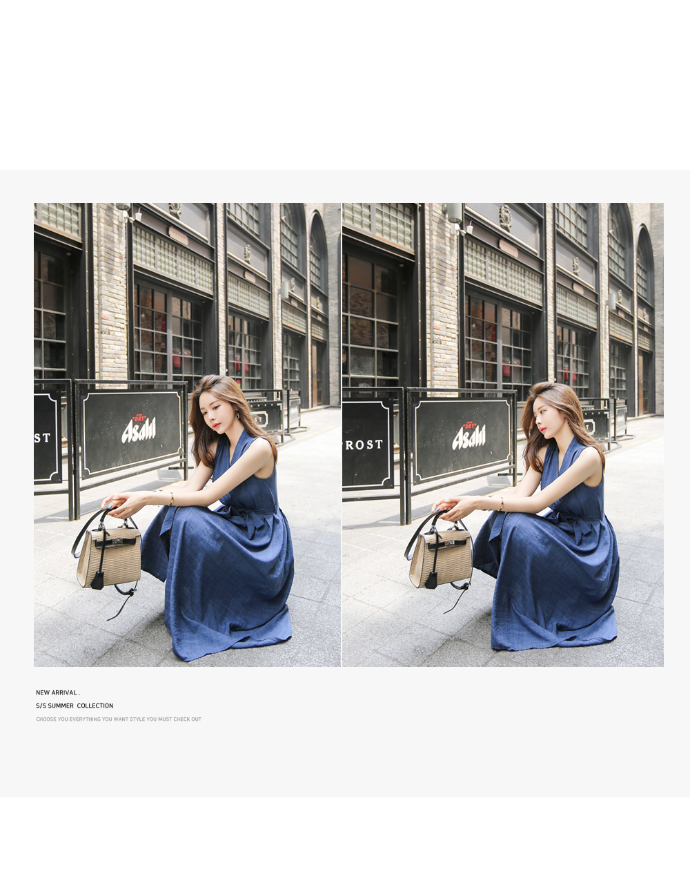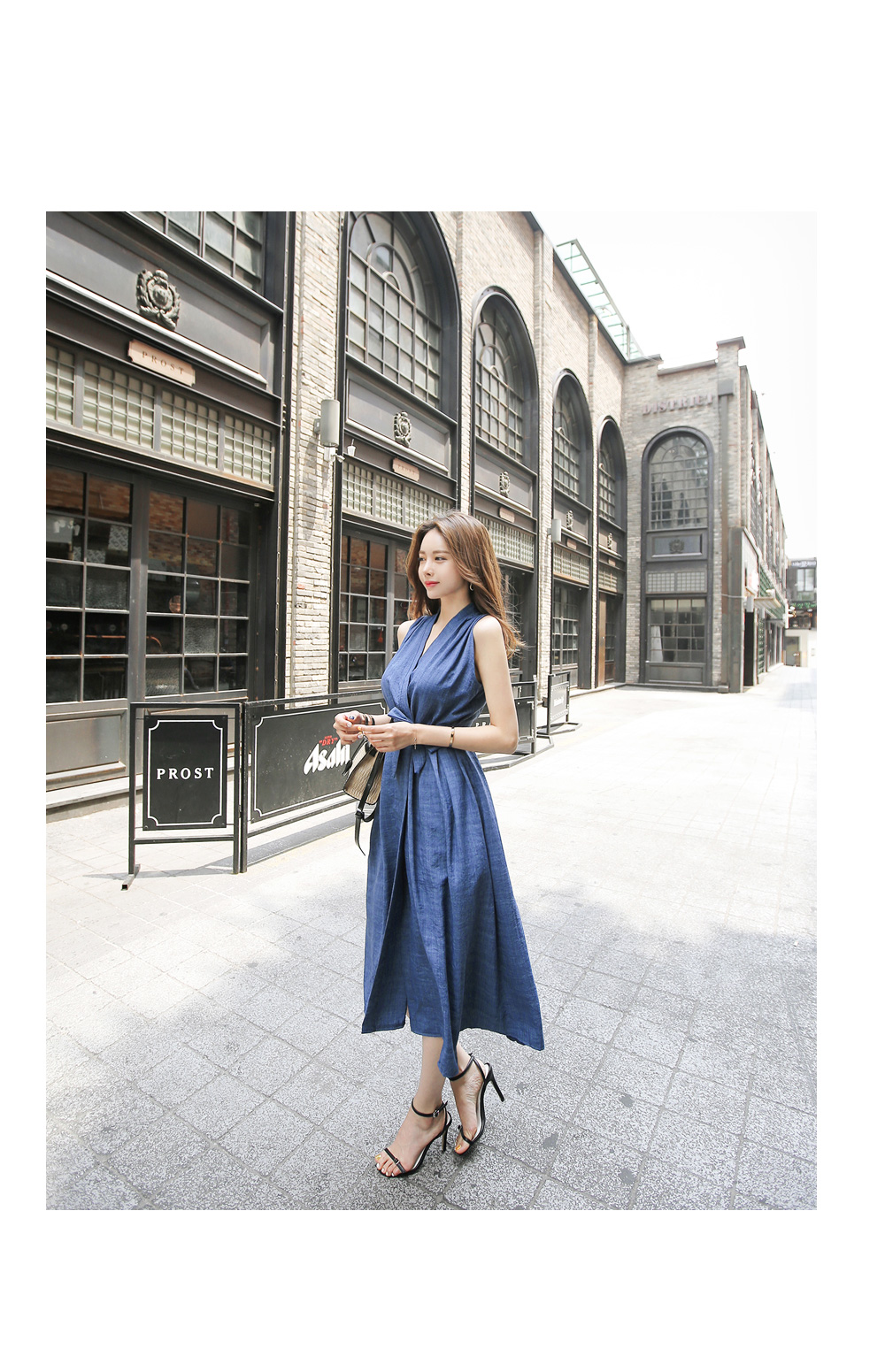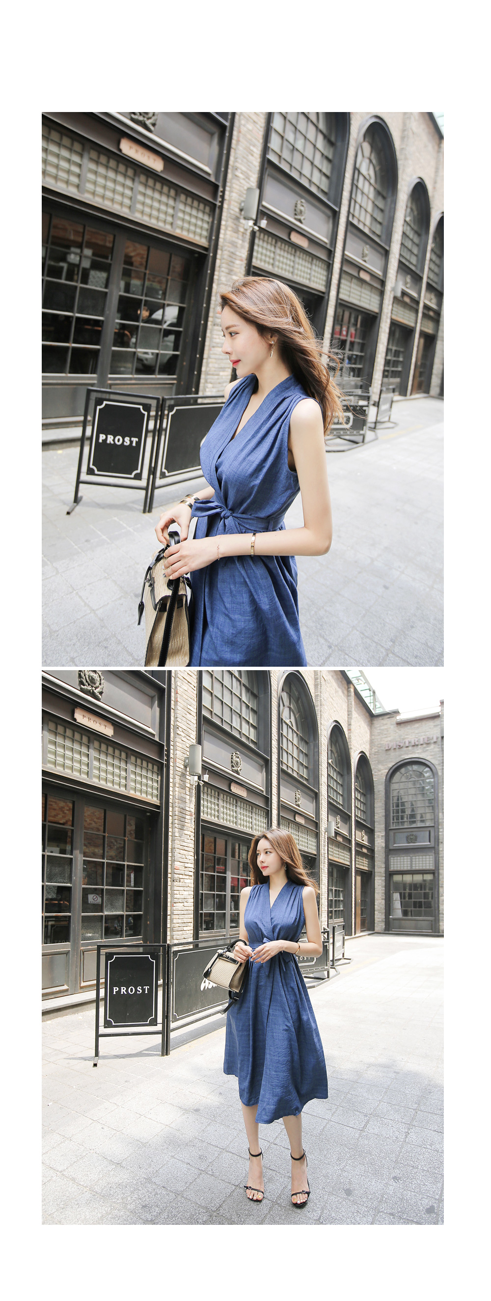 랩느낌으로연출되는 브이넥 네크라인으로 단정하게 마무리했어요 !
