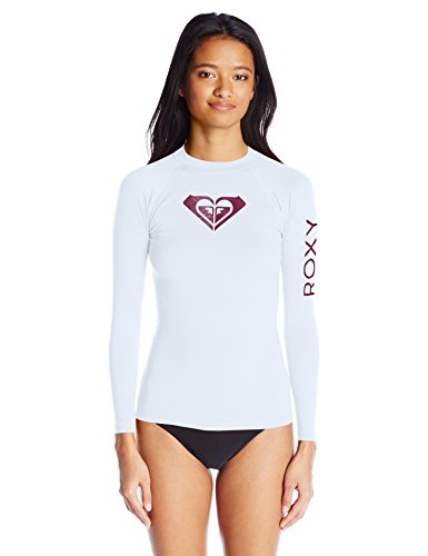 The whole hearted long sleeve rash guard includes a large Roxy logo screens at the chest and sleeve and UPF 50 protection.
