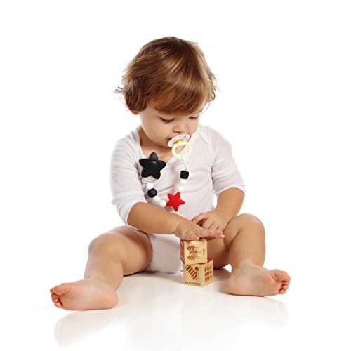 -. Title : Teether Toy Pacifier Clip - 3 Color Options - Baby Girl or Boy Star Beaded Silicone Teething Toy and Pacifier Clip - Greeting Card Included for Baby Gifts