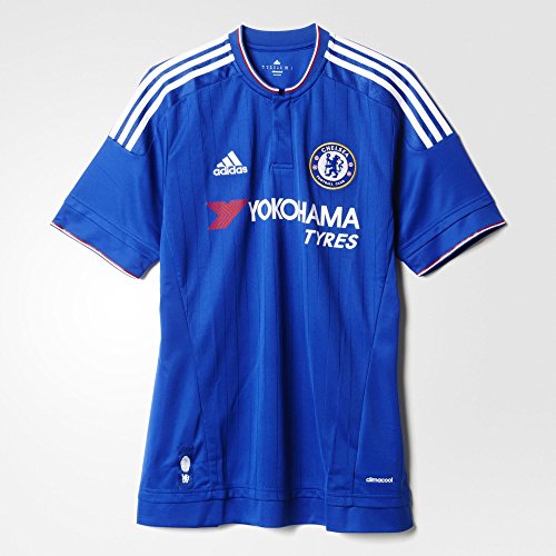 -. Binding : Misc. -. Brand : -. Color : Chelsea Blue, White, Power Red -. Department : mens -. Feature : Regular fit jersey uses Chelsea Blue with White and Power Red trim / Engineered pinstripes and fingerP.R.Int label add value and an authentic story / ClimaCool technology wicks away sweat to help keep you dry and comfortable / Mesh inserts provide airflow where you need it most / Ribbed crew neck -. Label : -. Manufacturer : -. MPN : AH5104 -. NumberOfItems : 1 -. PartNumber : AH5104 -. ProductGroup : Sports -. ProductTypeName : SPORTING_GOODS -. Publisher : -. Studio : -. Title : Mens Chelsea Home Replica Soccer Jersey