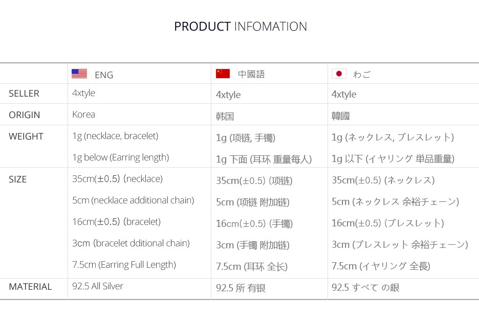 92.5 Silver 제품으로 알러지 없이 오래오래 간직하세요 :)