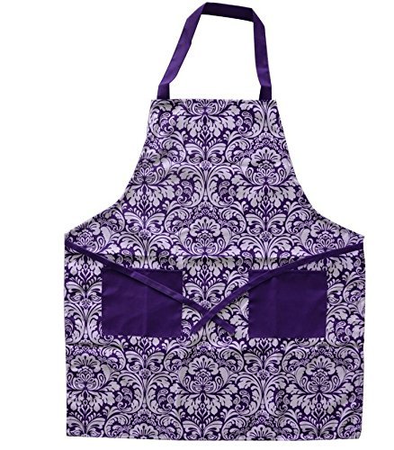 Novo Cotton Adjusatble Women Kitchen Apron with Pockets and Extra Long Ties Purple, Cute Apron for Cooking, Baking, Gardening, Crafting, BBQ