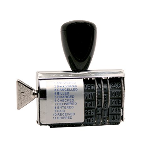 12 key message stamp includes: ANSWERED, BACKORDERED, CANCELLED, BILLED, RECEIVED, CHARGED, CHECKED, DELIVERED, ENTERED, PAID, SHIPPED, and FAXED