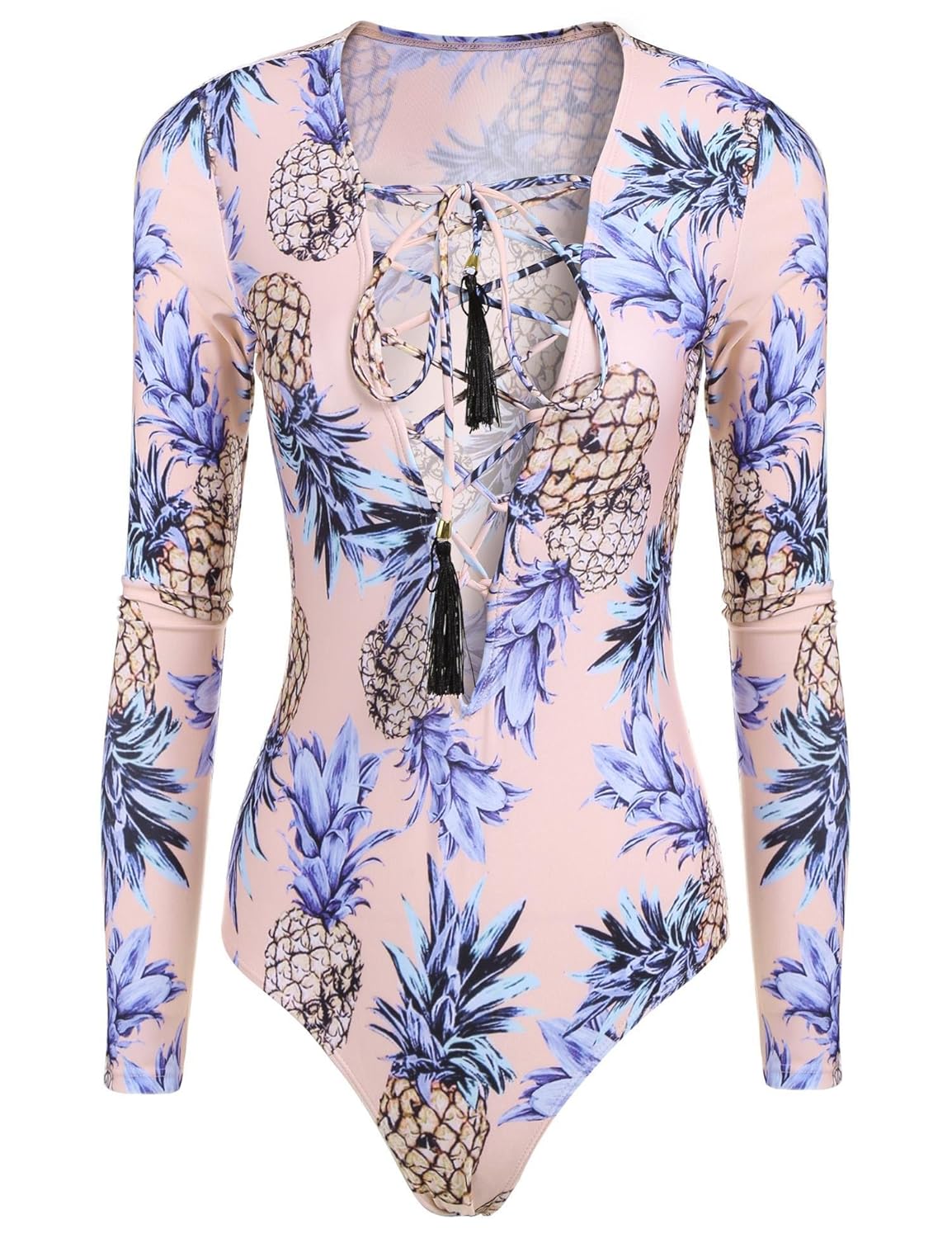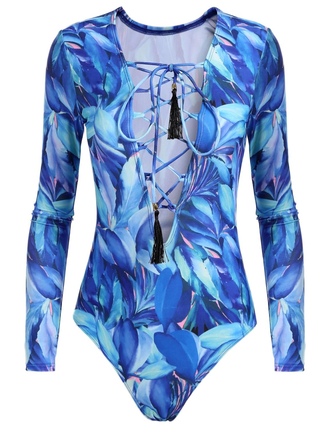 Please refer to the sizing information in the image to ensure you the utmost satisfaction possible with this product Imported Fabric: Stretch Poylester/Spandex Sexy Deep V Neck Features with Lace-up Criss Cross Strings at Front Style 66 Features Sleeveless and Criss Cross Adjustable Strap at Back for a Relaxed Fit Style 69 Features Long Sleeve Rash Guard Design. It's Good for Surfing or other Sports Activities on Beach Style 71 Features Sleevelss and Sexy U Cutsout Back. It's Perfect for Any Pool or Theme Party