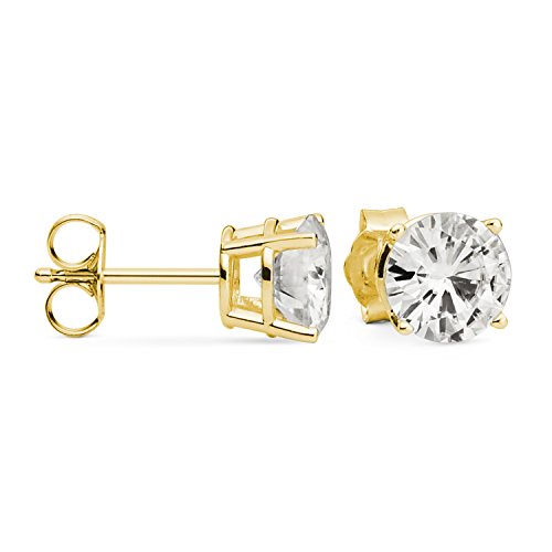 -. Binding : Jewelry -. Brand : Charles & Colvard -. Department : womens -. EAN : 0847337006141 -. Feature : These glamorous Forever Brilliant stud earrings showcase 6.5mm round brilliant cut moissanite gemstones. / Beautifully crafted in 14K yellow gold and secured in a four prong setting. / Each 6.5mm moissanite gemstone has a Diamond Equivalent Weight (DEW) of 1.00ct (Actual Weight 0.88ct). The pair of earrings has a total Diamond Equivalent Weight (DEW) of 2.00cttw (Actual Weight 1.76cttw). / Charles & Colvard Forever Brilliant is a near-colorless gemstone in the G-H-I color range that is masterfully hand-faceted by skilled gemstone cutters and carefully hand-polished to reveal its maximum brilliance and enhance its intrinsic fire. / Moissanite created by Charles & Colvard is among the hardest minerals on the planet, more durable than sapphire, ruby, or emerald and has more brilliance than a diamond. It scores 9.25 on the Mohs scale for hardness. -. Label : Charles & Colvard -. Manufacturer : Charles & Colvard -. Model : 387319 -. MPN : 387319 -. PackageQuantity : 1 -. PartNumber : 387319 -. ProductGroup : Jewelry -. ProductTypeName : FINEEARRING -. Publisher : Charles & Colvard -. Studio : Charles & Colvard -. Title : Forever Brilliant 6.5mm Round Moissanite Stud Earrings, 2.00cttw DEW By Charles & Colvard -. UPC : 847337006141