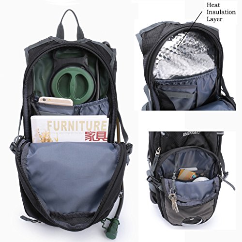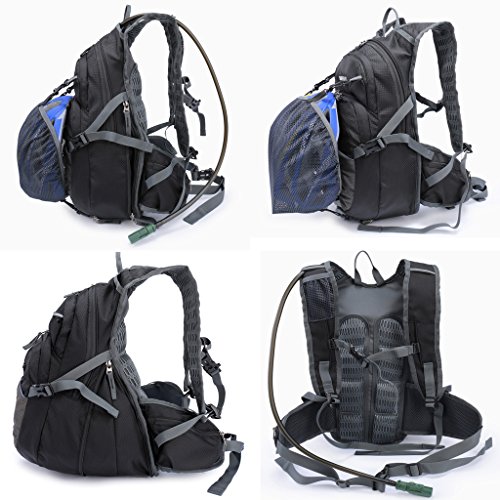 MULTIFUNCTIONAL- Three main pockets designed with insulating compartment for water bladder or laptop,two small side pocket fits your 5.5" phone,a helmet net and a rain cover.Many reflective stripe on the backpack to better protect your safety.The back suspension venting system is easier to heat dissipation.