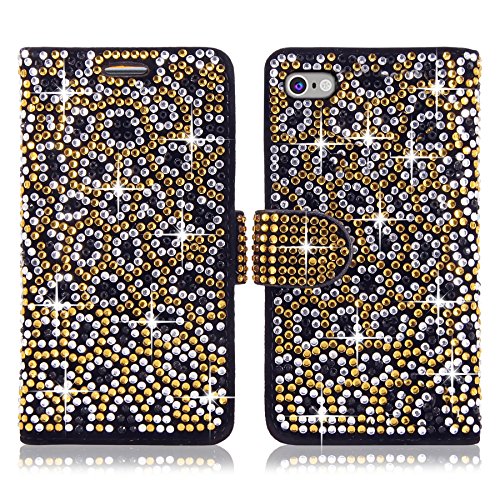 iphone 6 6S Case - Cellularvilla Pu Leather Wallet Diamond Design Sparkle Glitter Card Flip Open Pocket Case Cover Pouch For Apple iPhone 6 6S 4.7" inch (Gold Silver)
