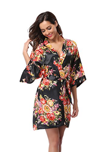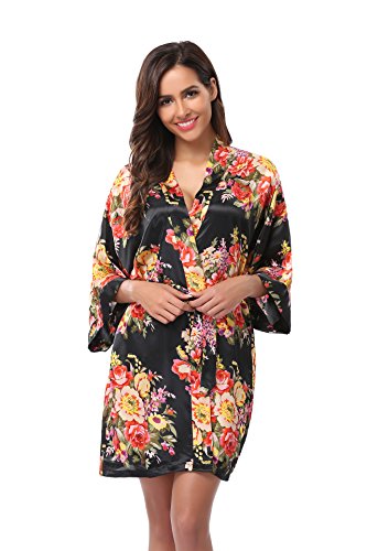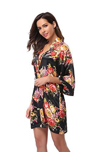 VogueBridal Women's Short Floral Wedding Kimono Robe, Black M