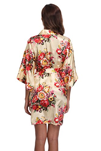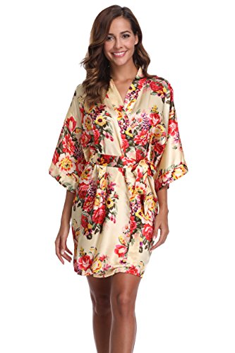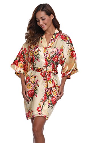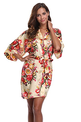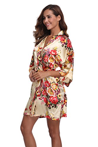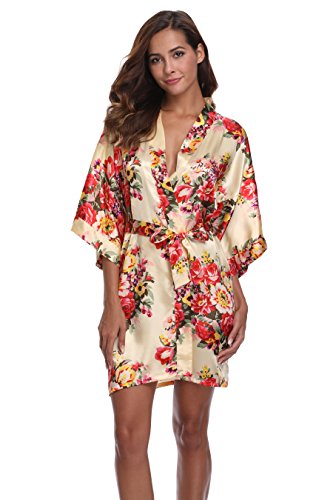 VogueBridal Women's Short Floral Wedding Kimono Robe, Yellow M