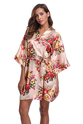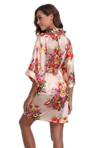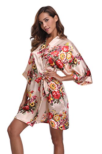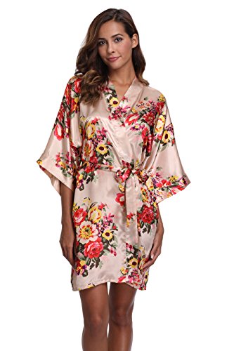 VogueBridal Women's Short Floral Wedding Kimono Robe, Beige M