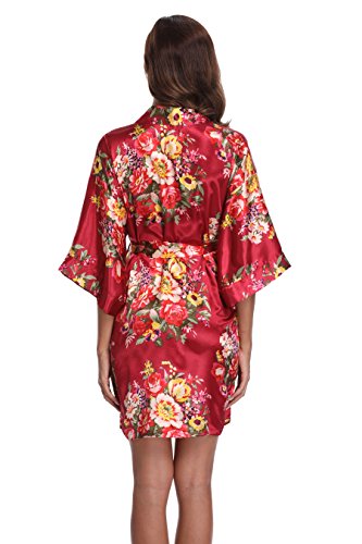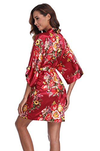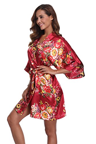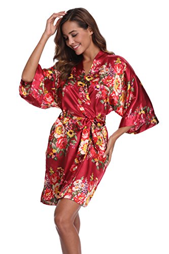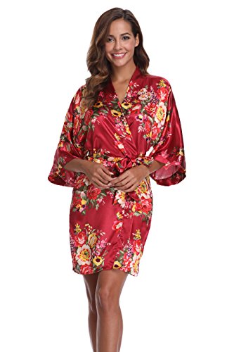 VogueBridal Women's Short Floral Wedding Kimono Robe, Burgundy M