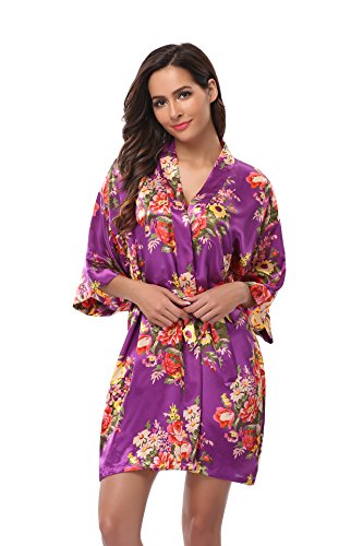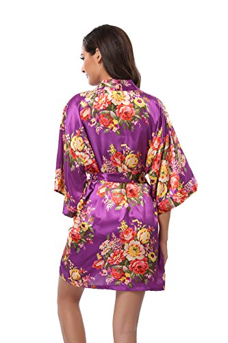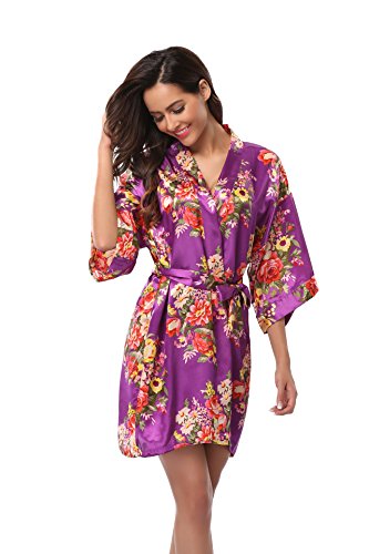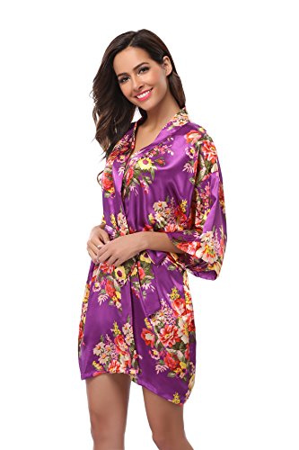 VogueBridal Women's Short Floral Wedding Kimono Robe, Purple M