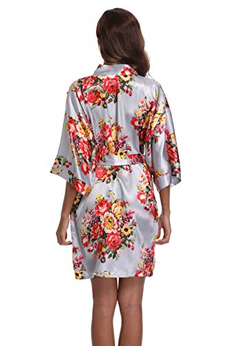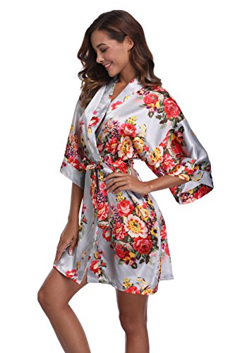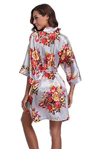 VogueBridal Women's Short Floral Wedding Kimono Robe, Sliver L