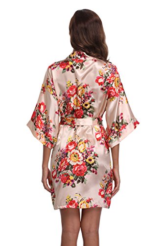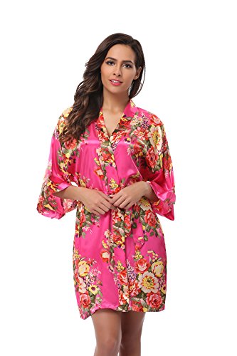 VogueBridal Women's Short Floral Wedding Kimono Robe, Rose M