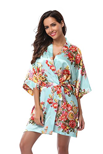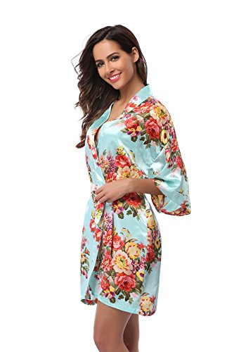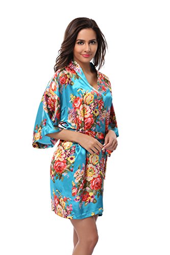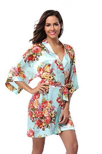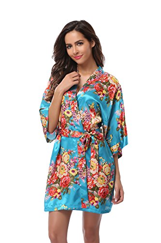VogueBridal Women's Short Floral Wedding Kimono Robe, Aqua S