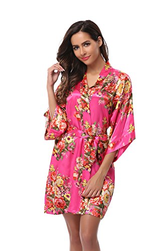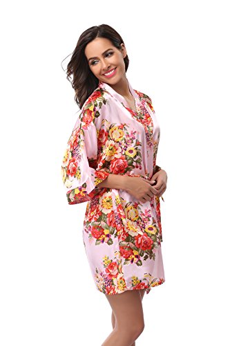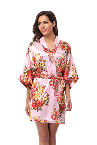 VogueBridal Women's Short Floral Wedding Kimono Robe, Pink S
