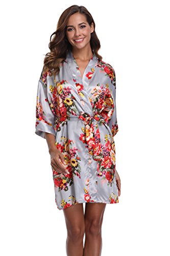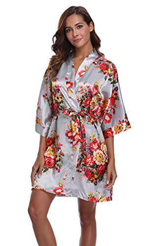VogueBridal Women's Short Floral Wedding Kimono Robe, Sliver M