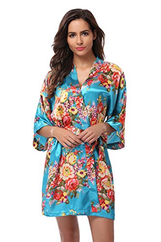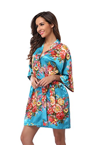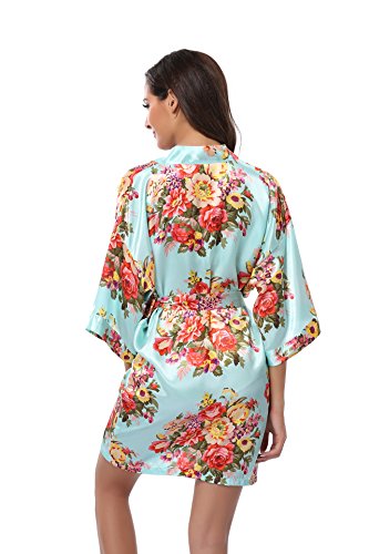 VogueBridal Women's Short Floral Wedding Kimono Robe, Aqua M