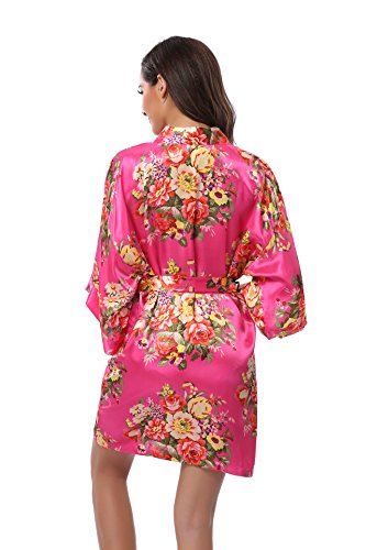VogueBridal Women's Short Floral Wedding Kimono Robe, Pink L
