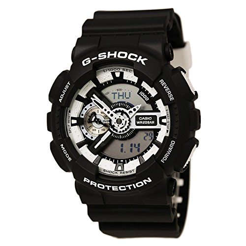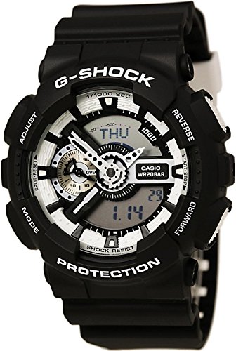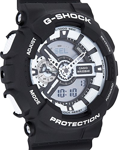 This new White and Black G-SHOCK model comes in basic black offset by the use of white accents. The result is a simple, yet powerful monotone design. New series brings a fashionable black and white theme to the pop ular GA110 case. This model features 200 Meter Water Resistance, Magnetic Resistance and a Stop atch, which makes this watch as functional as it is fashionable.Feature