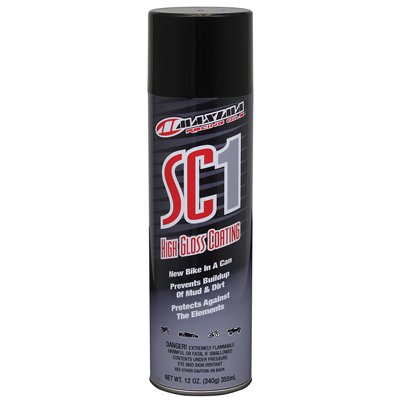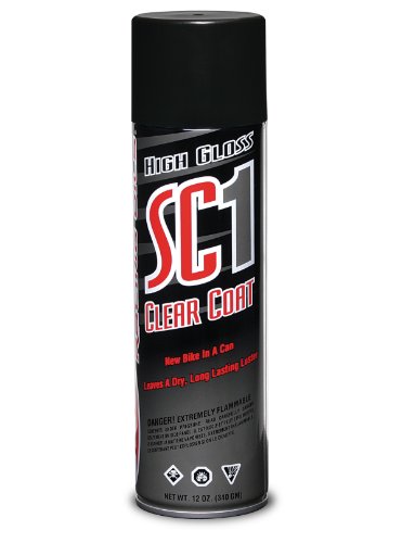 ReleaseDate : 2014-03-21 Studio : Maxima Publisher : Maxima Binding : Automotive Product Description High gloss SC1 Clear Coat is specifically formulated for the Powersports industry. SC1 coats plastic, fiberglass and painted surfaces. Makes the clean up process easier - excellent for use on Motorcycle and ATV fenders to prevent mud and dirt from adhering to plastic. SC1 is water resistant and leaves a dry, long lasting luster and shine. CAUTION: Flammable, Do not spray near open flame. FEATURES: Fresh Clean Scent; Restores factory shine and color; Leaves a dry, long lasting luster. 0