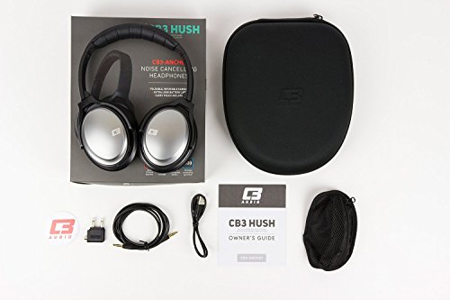 1 YEAR NO QUESTIONS ASKED WARRANTY -- We are happy when you are happy! Includes: (1) CB3 Hush ANC Headphones, (1) Carrying Pouch, (1) Micro USB, (1) 3.5mm Audio Cable, (1) Inflight adapter for airplanes.