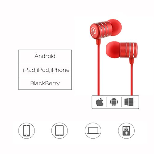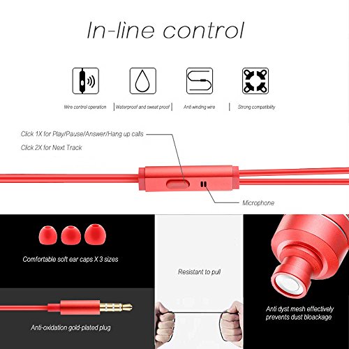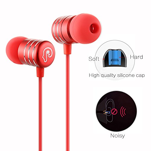 In-Ear Earbud Stereo Headphone, Noise-isolating Wired Headphones with Microphone for Phone PC MP3 by HoldSound (Red)